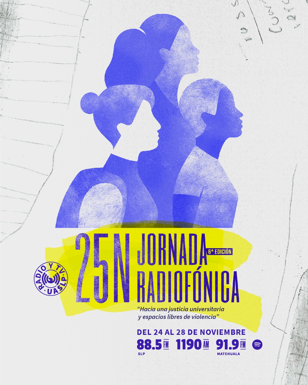 La Dirección de Radio y Televisión a través de distintas voces, abrirá espacios de reflexión y diálogo desde la diversidad e inclusión para la construcción de espacios libres de violencia hacia las mujeres. Con participaciones de producciones en barra, la miniserie Fuimos Todas y programas especiales de la Defensoría de Derechos Universitarios UASLP, la Abogacía General de la UASLP, El laboratorio de Monitoreo de Medios, la Unidad Especializada de Atención a Pueblos y Comunidades Indígenas, Onu Mujeres y Altavoz Radio.