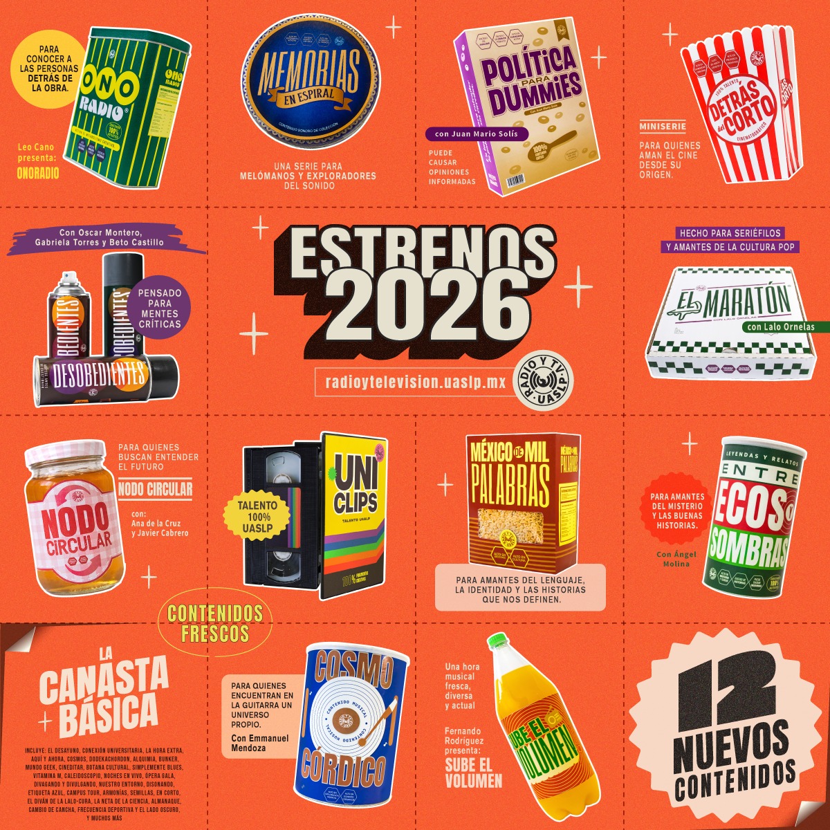 El Sistema de Radio y Televisión de la Universidad Autónoma de San Luis Potosí inicia el 2026 con una renovación significativa de su oferta de contenidos, incorporando 12 nuevas producciones, así como el regreso de segundas, terceras y cuartas temporadas de programas que han consolidado su vínculo con las audiencias.