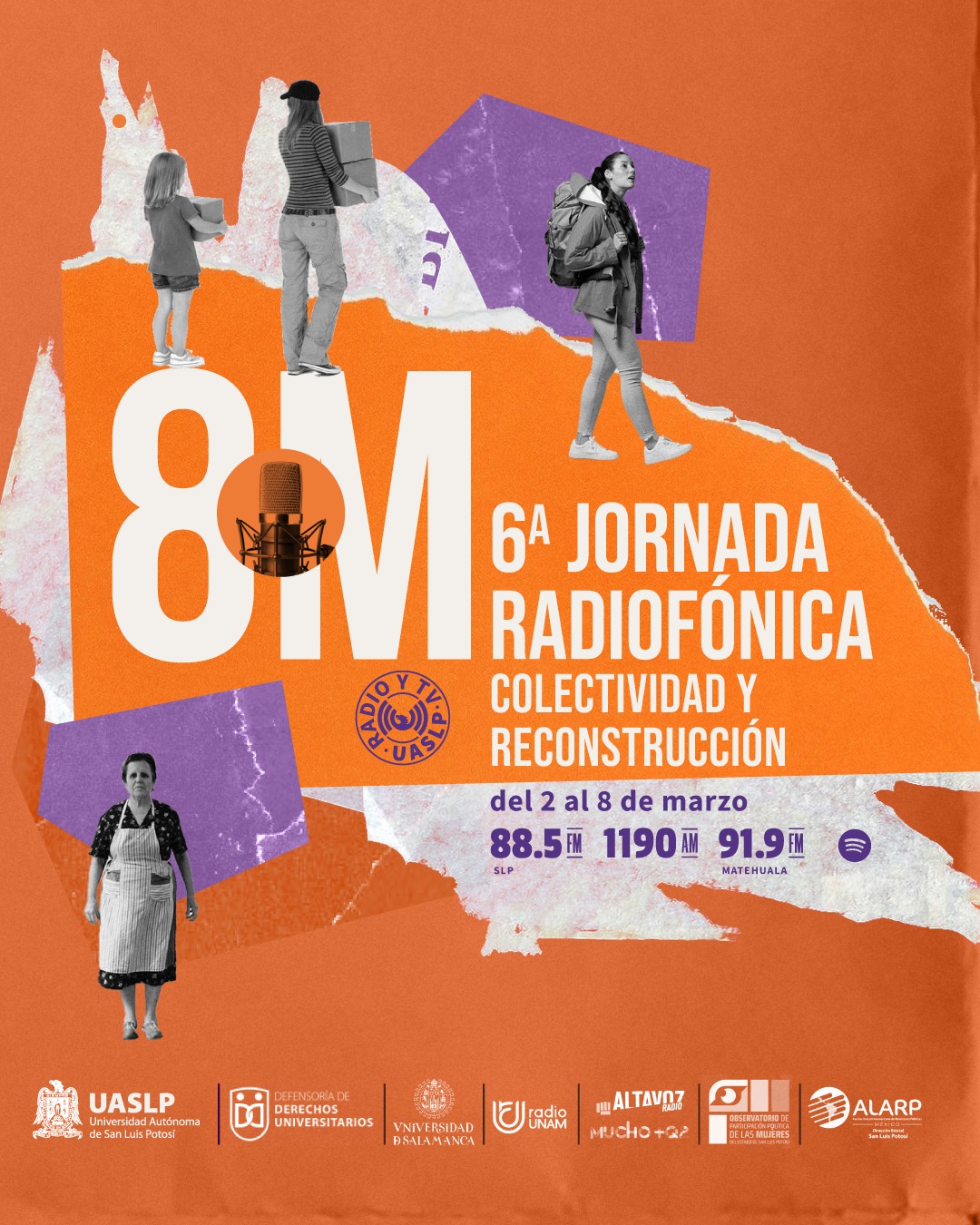Como parte de las actividades que se gestan desde el Comité Institucional de la UASLP, en el marco de la conmemoración del Día Internacional de la Mujer; la Dirección de Radio y Televisión Universitaria llevará a cabo la 6ta Jornada Radiofónica del 8M 2026, bajo el lema “Colectividad y reconstrucción”.