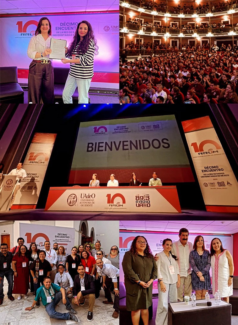 La Red de Radios Universitarias de México (RRUM) llevó a cabo su 10° Encuentro en la ciudad de Mazatlán, Sinaloa, en una celebración que marcó la primera década de trabajo colaborativo desde su establecimiento en junio de 2015. Este evento reunió a directivos de radiodifusoras universitarias, expertos en comunicación, académicos y funcionarios públicos que compartieron experiencias, se capacitaron y fortalecieron el trabajo en red a través de conferencias magistrales, mesas de análisis y paneles de discusión.